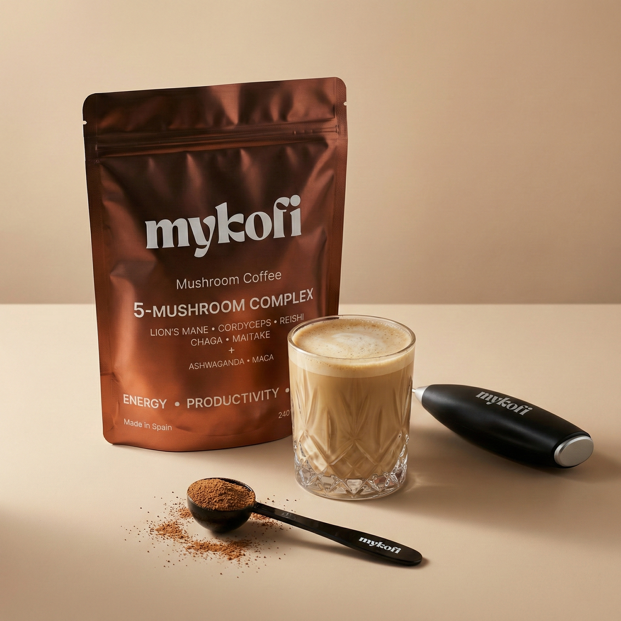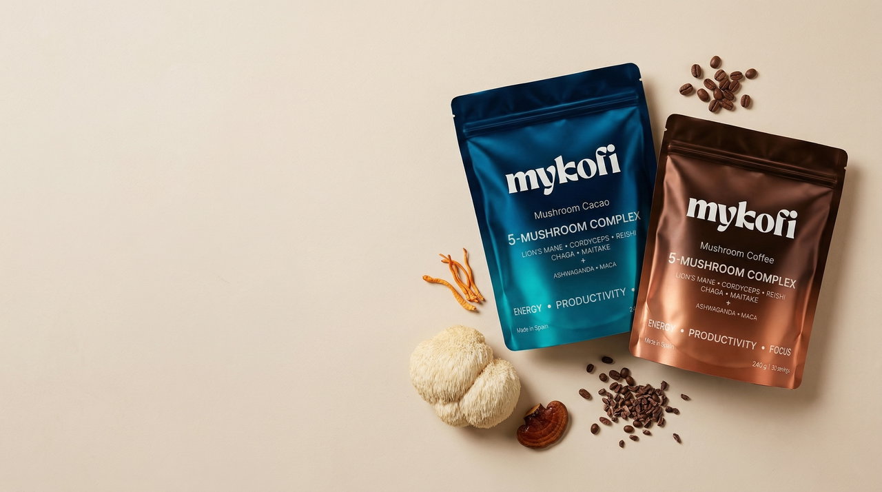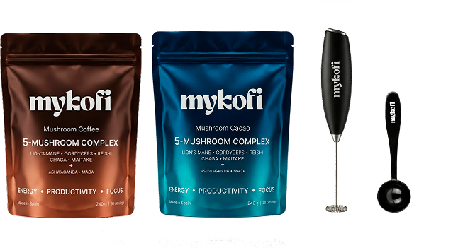 MYKOFI combina café arábica de calidad con hongos funcionales y adaptógenos para ofrecer una energía más equilibrada y constante.