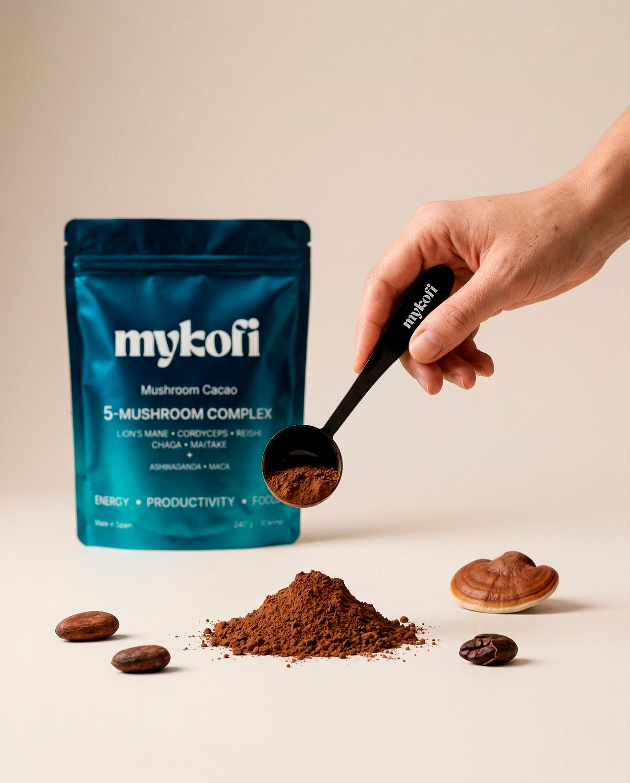 MYKOFI combina ingredientes funcionales para ofrecer una sensación más estable y sostenida — tanto en café como en cacao.