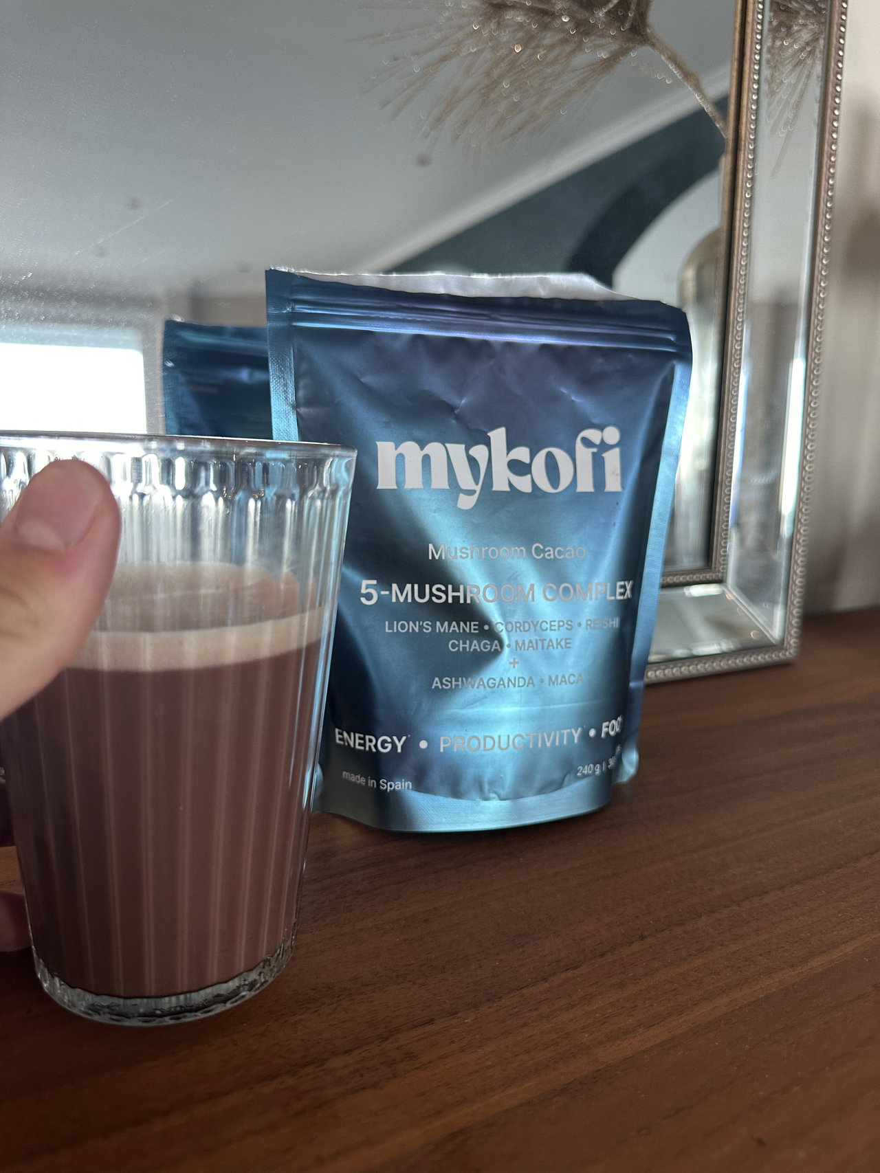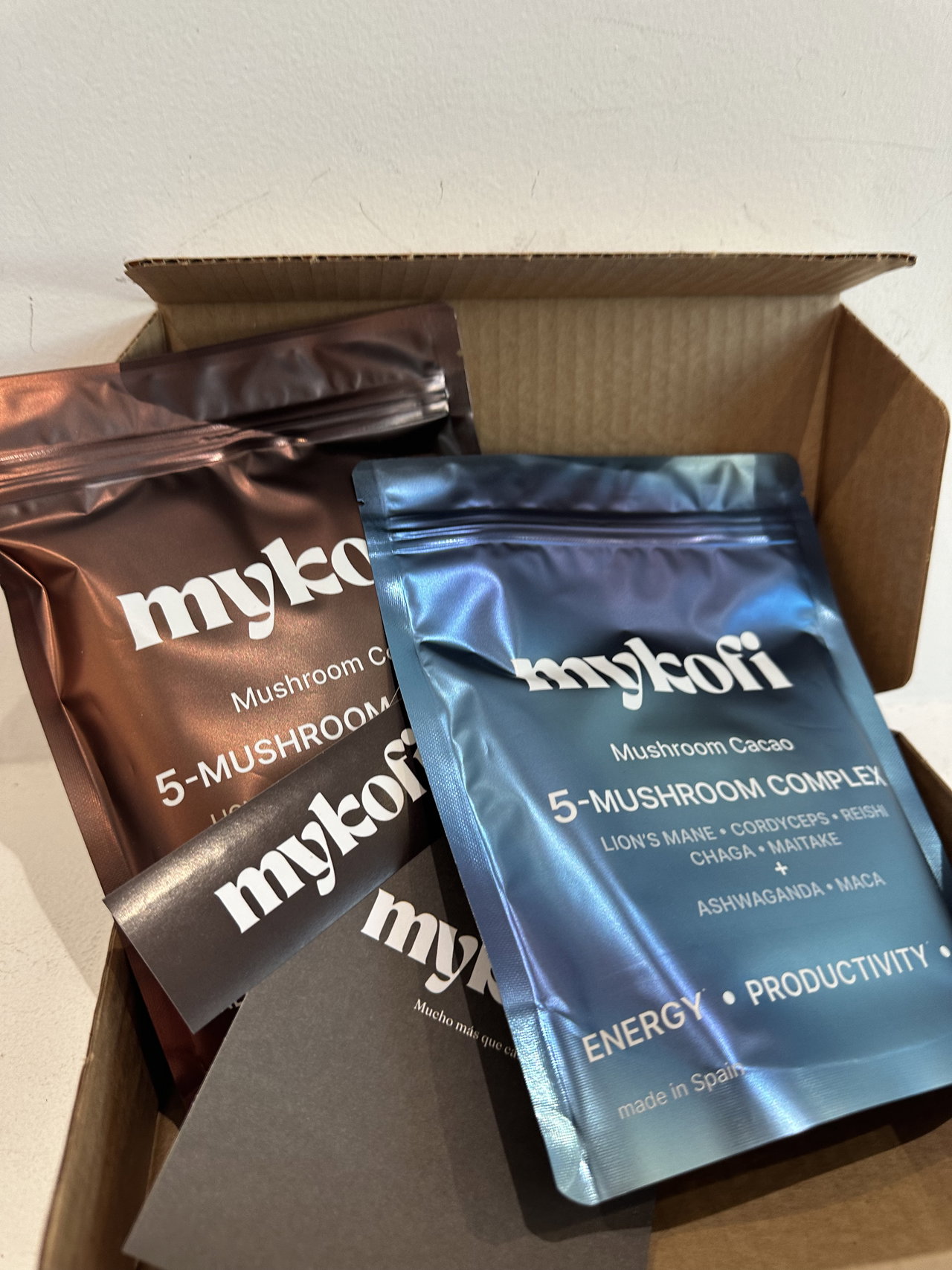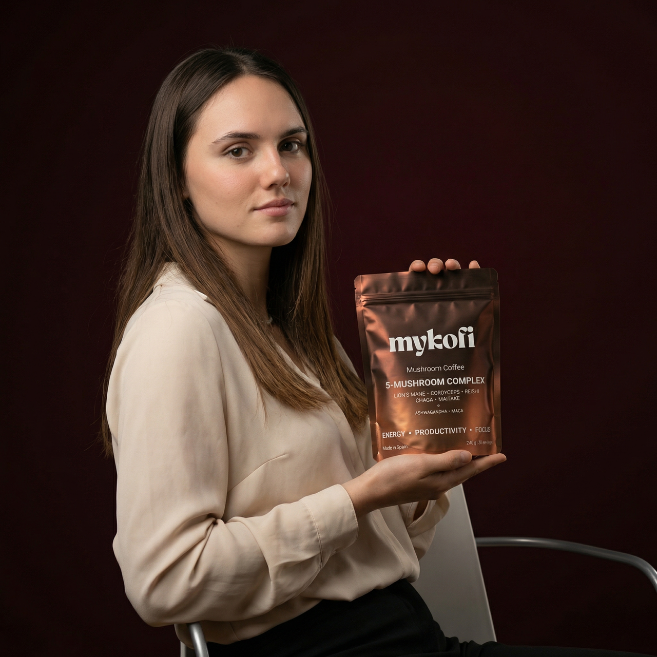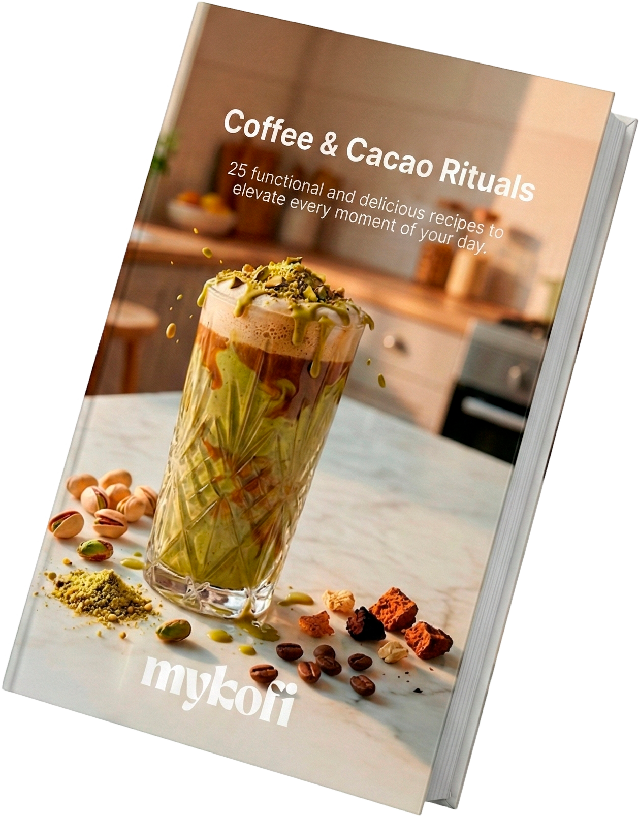 Puedes probar MYKOFI Cacao, que contiene los mismos ingredientes funcionales, pero sustituye el café por cacao puro. Ofrece una energía suave y reconfortante de forma natural, con un espectacular sabor a chocolate, ideal para tomar más tarde en el día.